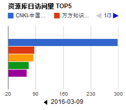 提供電子資源庫的使用統計分析,包括訪(fǎng)問(wèn)量排行統計、趨勢統計、占比統計,全文下載量統計,以及用戶(hù)訪(fǎng)問(wèn)量統計??缮删赖慕y計圖表,便于館員掌握資源庫的使用情況,可為資源的評估提供參考依據。每天生成資源庫的日訪(fǎng)問(wèn)量統計,前端自動(dòng)更新相應圖表,目前展現有“資源庫日訪(fǎng)問(wèn)量TOP”、“日訪(fǎng)問(wèn)總量各類(lèi)型占比”、“日訪(fǎng)問(wèn)總量近期走勢”,美觀(guān)實(shí)用。